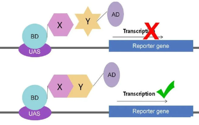酵母雙雜交系統,又稱蛋白阱捕獲系統,是由Fields和 Song等人根據真核轉錄調控的特點創建的。利用酵母雙雜交系統能夠快速、直接分析已知蛋白之間的相互作用,并能尋找、分離與已知蛋白相互作用的配體,在研究抗原和抗體相互作用、發現新的蛋白質和發現蛋白質的新功能、篩選藥物作用位點及藥物對蛋白互作影響、建立基因組蛋白連鎖圖等方面應用廣泛。