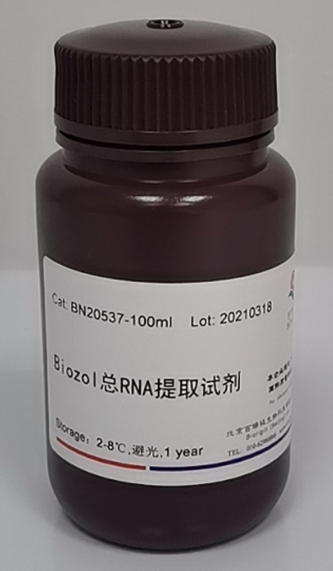 本試劑是一種通用的總 RNA 提取試劑,適用于動植物細胞或組織及細菌的總RNA 抽提,可有效防止 RNA 在提取過程中的降解。獲得的 RNA 可直接用于 Northern 雜交,純化 mRNA,體外翻譯,RNase 保護實驗,RT-PCR 以及cDNA 克隆等一系列操作。該試劑可用于 100 次總 RNA 提取(10 平方厘米細胞或 100mg 組織)。